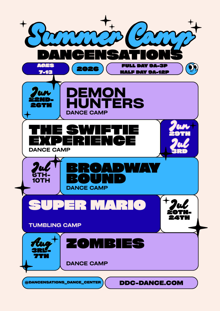 Dancensations Dance Center offers a wide variety of classes for students ages 3 and up. Whether you are looking to move, learn, perform or be part of a team, we have something for you.